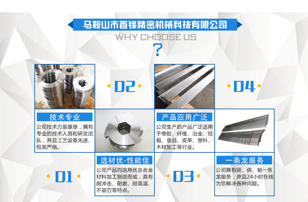 - 主打產(chǎn)品 : 剪板機(jī)刀片 圓刀片 折彎?rùn)C(jī)模具 硬質(zhì)合金(鎢鋼)刀片 分條機(jī)刀片 撕碎機(jī)刀片